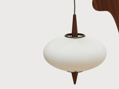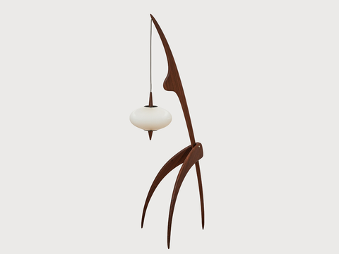 The Praying Mantis Floor Lamp is an American version of the classic mid-century French design by Georges Rispal. Named after La Mante Religieuse, or the Praying Mantis, this piece features beautifully arched legs with a pleated white lamp shade made from similar, but updated, materials that could be found in the 1950s.