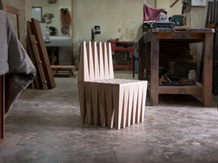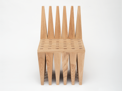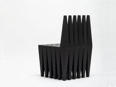 The Obsidiana Chair is an exercise in, rhythm, repetition, and constraint, replicating the same shape in a sequence that provides a strong yet serene object evokes a landscape, that grounds itself and pays homage to earth and nature, the trees, the mountains and the forest, both the seen and unseen. Playing in dialogue and juxtaposition with the ethereal and airy language of the Lana series. The Obsidiana Chair is built with 40 Solid Oak tapered legs and finished with an Iron Vinegar Dye.