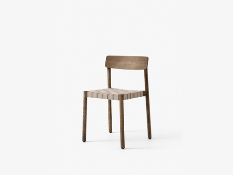 Named after the Betty Nansen theatre in Copenhagen, this stackable chair comes in two versions: one with a seat made from exposed webbing crafted from natural linen fibres, and another with a solid wooden seat. It is available in three contemporary frame colours: Black lacquered oak, Maroon lacquered ash, as well as lacquered solid oak.