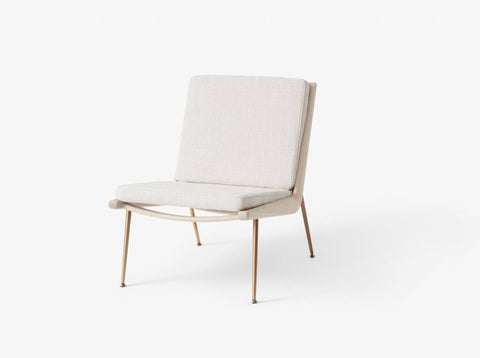 Debuted in 1956, the lounge chair by duo Hvidt & Mølgaard has a no-frills, streamlined form. From the hand-polished wooden frame, to its slender brass legs, the Boomerang endures as a masterpiece of Danish design.