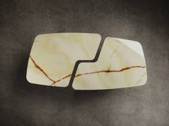 L’Armando dining table is divided into two independent complementary parts that can be placed side by side