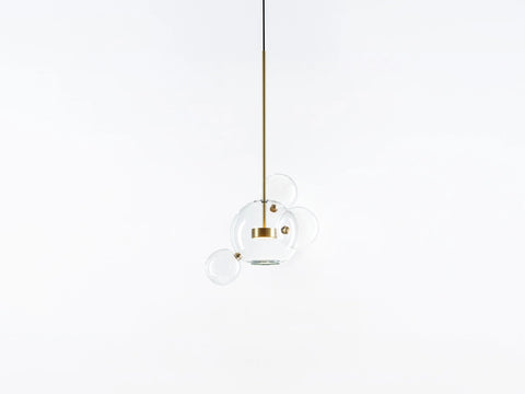 The lightness of the soap bubbles has become a metaphor for the immateriality of light. Bolle is a collection of lamps in transparent glass, where the illuminating brass bulb is suspending between the spheres, giving light to not only the space but also the curved surfaces, multiplying reflections to amplify the magical effect. The Bolle lamps are hand blown by local Venetian artisans using the “a lume” technique.