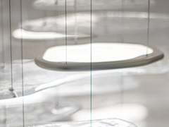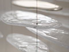 murano glass, aluminum, white canopy, steel wire suspension