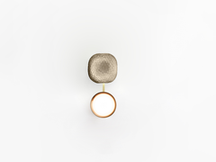 hand blown Murano glass, lost wax brass casting, turned brass, convex acrylic lens