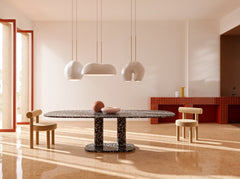 Moonstone is a collection of multifaceted pendant lamps inspired by organic rock sculptures: horseshoe-shaped, oval-looking, elongated or facet dome. With the simplicity of their pure design, they summon our most true, uncontaminated thoughts and emotions.