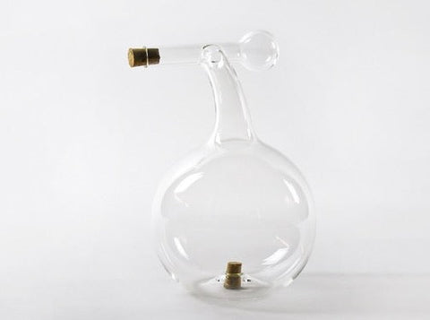 mouth-blown borosilicate glass was chosen as a material for its nature of being thin and lightweight, while still remaining heat-resistant and deceivingly durable. mouth-blown borosilicate glass cork stoppers bulb measure a teaspoon