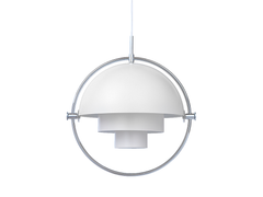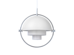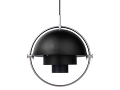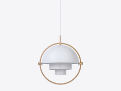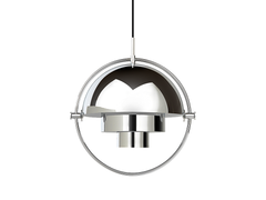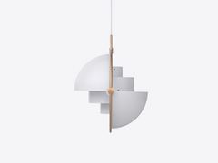 The Multi-Lite Pendant embraces the golden era of Danish design with its characteristic shape of two opposing outside, mobile shades that enable creating a personal installation and a wide range of lighting values in a room. By individually rotating the shades, the Multi-Lite Pendant can be transformed into multiple combinations where the light can be directed upwards, downwards or exude an asymmetrical art light.