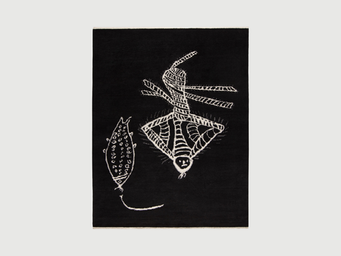 The pattern featured on the Graffiti rug comes from a photo of a pair of obscure marine animals sketched by an anonymous Japanese sailor that Charlotte Perriand took on the Hakusan Maru ship in June 1940.