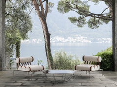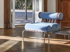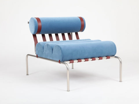 The low seat creates a cozy and intimate ambience. The fine leather bands are the result of a manual process that combines aesthetics and support to the cushions of the Kylíndo armchair. Details such as visible saddle studs, the so-called "clous de selle", bear witness to an exceptional level of finish and the sophistication of a savoir-faire.