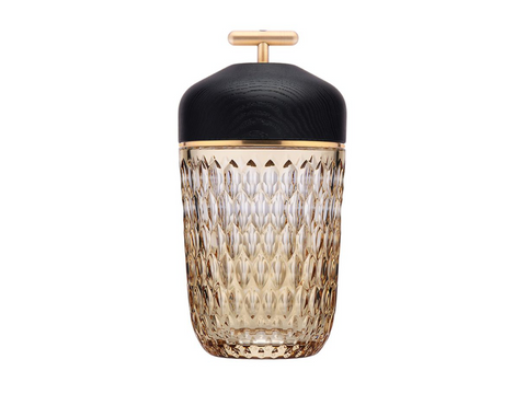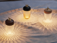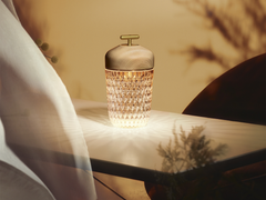 As a table or desk lamp, on a terrace or a boat, the contemporary design of the Folia portable lamp complements all decorative styles. The staggered bevel-cut crystal creates a surprising geometric pattern multiplied by the light, reflecting an abundance of technological skill.