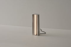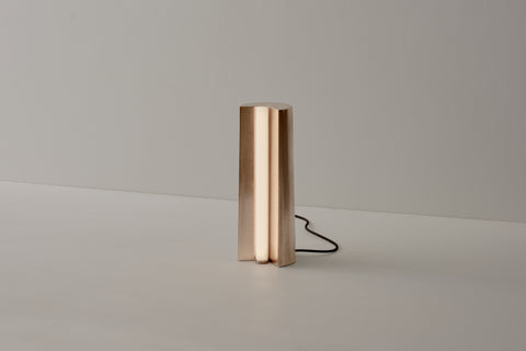 Poured as a single piece of metal using traditional sand-casting methods that impress textural elements into its surface, Tableton Tall is a sculptural table lamp.