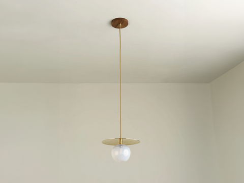 Hand-forged brass with hammered finish, blown glass globes, rayon sheathed cable