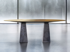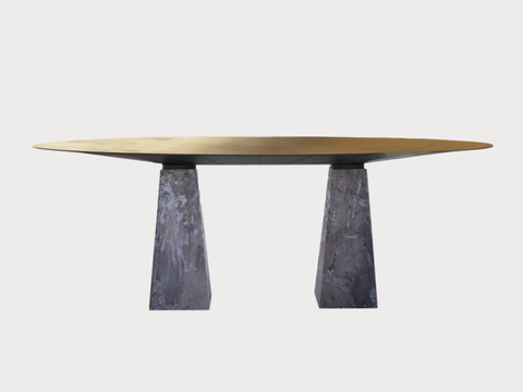The concrete table base is an architectural elements from the designer's family home, which was dismantled during the renovation of the historic building. Here, the designer approaches the original pre-war fabric of the places he grew up in with great sentiment. In this way, the old world does not pass away, but in fact acquires greater significance.