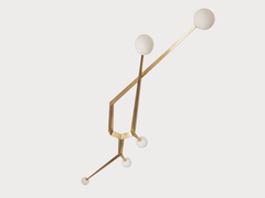 This lamp draws inspiration from the vastness of cosmic space and the works of Polish artist Stanisław Szukalski, whose art delves into the cosmic and spiritual realms. The structure of the lamp embodies the exploration of the universe, with light points symbolizing distant stars, interconnected by dynamic, flowing lines. The form evokes the motion of two intertwined figures, their elongated limbs twisting and merging at the center. This intertwining structure reflects both the complexity and harmony of the cosmos, capturing the fleeting, dynamic nature of the universe and the intricate relationships within it.
