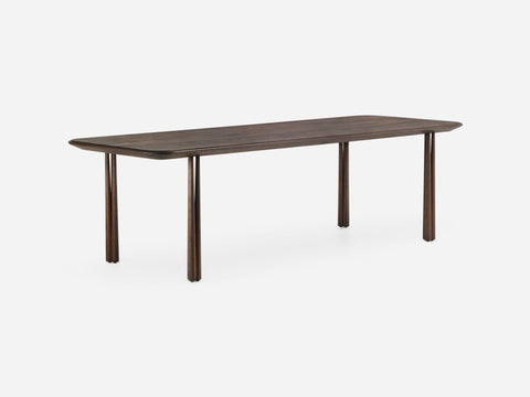 Elliot is an intricately detailed table that harnesses De La Espada’s woodworking expertise in a form that captures the sumptuous qualities of a traditional American aesthetic in a more modern design language. It is available with a rectangular or oblong tabletop in a variety of sizes. Part of a family of furniture that includes a dining chair, desk, and dressing table.