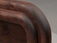 Inspired by the juxtaposition of old and new design seen in converted Brooklyn brownstones, Carlton Bed is modern with historical references. It shares its design language with Elliot Table and Chair. The frame is made from a series of carved wood components, revealing a stunning composition of grain patterns. Upholstery softens the headboard.