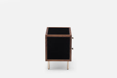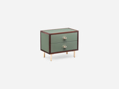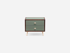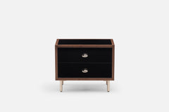 Classon Bedside Chest transcends time, its modern form featuring rich detailing that nods to a more traditional American aesthetic. Polished bronze drawer pulls and legs elegantly complement the cabinet body available in an array of timbers and finishes and painted hdf. Two generous drawers, detailed with dovetail joinery and a soft-close mechanism provide generous storage for bedside items.