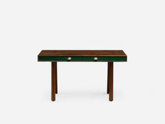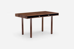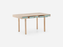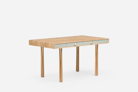 Inspired by the juxtaposition of old and new design seen in converted Brooklyn brownstones, Elliot is modern with historical references. Elliot Desk shares its elegant leg design with Elliot Table and Chair. A timber frame wraps around two painted hdf drawers which feature bronze pulls, dovetail joinery and a soft-close mechanism.