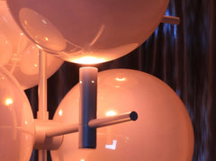 Technically, it offers two lighting options. The spheres either reflect the light or they glow from the inside. That is achieved thanks to separate lighting circuits. The one dimmable lighting source illuminates the spheres from the inside and the other illuminates the spheres from below, producing a diffused ambient warm light for an evening atmosphere.