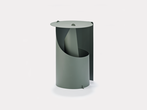 A single sheet of steel rolled in one smooth motion into a self-supporting construction. Aldo Bakker’s exquisite sense of merging color, material and form has come into play to create an occasional table with an effortlessly sculptural appeal.