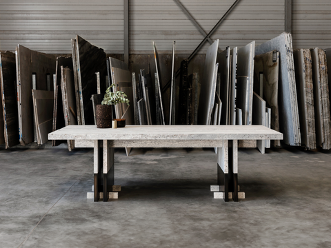 The design for a new table was created by the need for a simple aesthetic with an honest construction. By duplicating all elements, the table has a stable basis and also a certain finesse. The simple idea to split the elements creates an honest and visible construction that is self-supporting, with a nod to the Japanese design method.