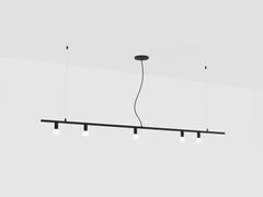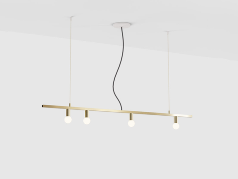 The Dot Line Suspension combines the luminosity of exposed bulbs with the richness of brass in a geometrical distribution. The result is a collection of lamps inspired by a graceful balance of lines and incandescent points.