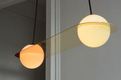 The Laurent Collection distills the milk globe to its essential relationship between circle and sphere. A series of thin forms compliment the Laurent globes—forms that carve through space, moving between line, surface, and volume. These forms combine in endless patterns, making it possible for an installation of Laurent lamps to inhabit any space with subtlety and quiet strength.
