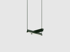 The Mile Collection offers a variation on the linear suspension—pared down to its asymmetrical expression— with two lines floating in surprising equilibrium. A play on contrasts, the 90° pivot marks out space with direct and indirect LED light. Created in collaboration with Canadian designer Guillaume Sasseville.