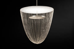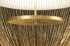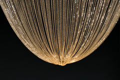 Inspired by the lantern's delicate character, it casts a soft glow, thanks to indirect light from the interior reflected and scattered by the hundred jewelry chains it is made from.