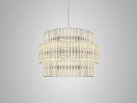 A chandelier of multiple adaptations which projects layers of ethereal rings of light created from linear LED light bulbs. Created and produced by Lee Broom, the hand blown glass bulbs contain a perpendicular LED filament which refracts against the vertical lines of the reeded glass. En masse and reflecting in the rings, the overall effect ensues a glowing aura.