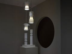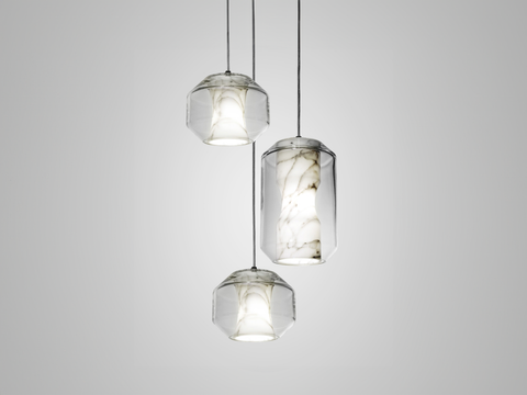 This Chamber Chandelier is a stunning lighting centrepiece featuring one Large, and two Small Chambers hung at various lengths to create a luxurious installation. Housing a sculptural Carrara marble diffuser within a lead crystal vessel, Chamber expresses the unexpected translucent qualities of marble in a compelling decorative pendant.