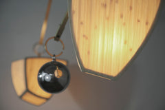 bamboo veneer diffuser, brass tube frame, polished black or silver stainless steel ball