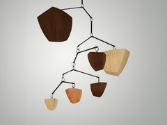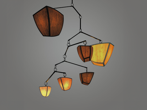 Bamboo Ivy 6 ABCDFG is a large mobile chandelier with 6 glowing bamboo polyhedrons, arranged in size order. The Ivy Series is a vertically oriented variation which mimics the shape of Ivy vines.