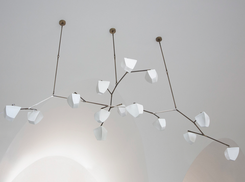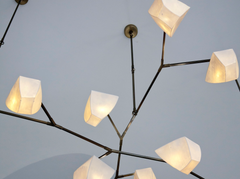 hand-cast porcelain polyhedron shape by Nymphenburg Porcelain, brass hanging system