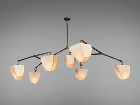 hand-cast porcelain polyhedron shape by Nymphenburg Porcelain, brass hanging system