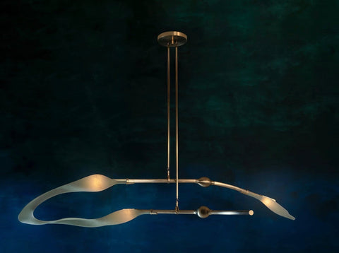 The McTavish Chandelier, named for the pioneering Australian surfboard shaper Bob McTavish, is one of 2 hand made mobile lighting fixtures offered under the umbrella of the Pisces Collection.