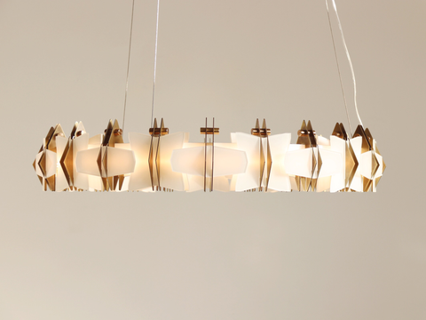 Informed by the interlocking components of a snake’s spine, Covenant is a contemporary take on a traditional glass chandelier.