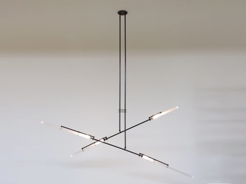 Tubes of frosted glass at varying lengths break free from their brass cages. PYRE is inspired by the exploding sparks of a Blacksmith’s hammer.