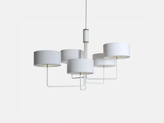 Arms in black or white powder coat, details in finished metal, cotton shades, opal acrylic diffuser