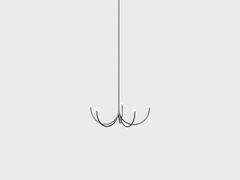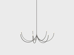 Arca is a lighting system whose form is a play of contrasts between the classical swooping branches and the spare minimalism of its linear, black composition. Tiers can be easily added together to create a unique chandelier.