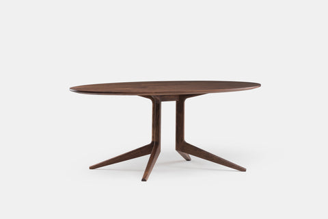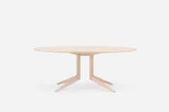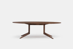 Light Oval Table reflects Matthew Hilton’s interest in the concept of ‘impossible lightness,’ where he tries to create the feeling of greater spaciousness in a room by reducing the visual weight of his furniture. Surprisingly slender, this sculptural table features a slim tabletop, with timber planks oriented lengthwise to proudly display the quality and natural beauty of the material, and a cantilevered leg with complex joinery.