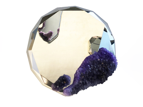 Through Atelier Mark Sturkenboom, he has formulated a mineral-based fluid which, through a gradual process of accretion, precipitates the growth of crystals on various types of objects. As part of the Overgrown series, “Once Upon A Time” is a collection of diamond-shaped mirrors that are overgrown with natural minerals. The mirrors portray a fading self reflection and allude to a changing state of transience in time and identity.