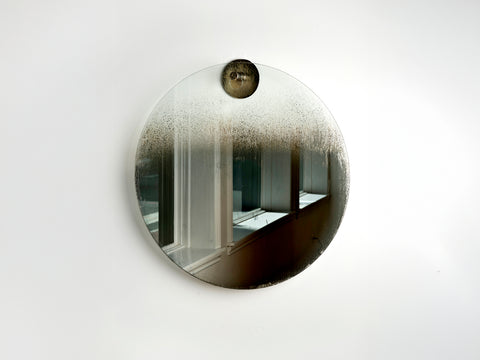 Gregory Nangle began using Églomisé in 2001 to make a series of sculptures relating to literary works he was studying at the time. Eugene O’Neill in his famous “Long Days Journey Into Night” employed the backdrop of “Fog” as a literary device dealing with themes like uncertainty, identity, perception, and obfuscation. Gregory saw many parallels in the process and use of mirrors.