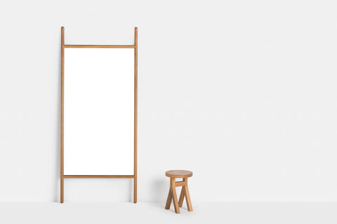 The Extend Mirrors are an abstraction of the common bamboo ladders used as household objects inside and outside country homes in China. These mundane ladders functioned as an ever-ready stand for hanging a wide variety of things from tools and cloths to dried food. A Chinese ladder is a reflection of its owner, revealing information about them based on how they choose to use it. As a tribute to this utilitarian household symbol, Neri&Hu used three different ladder proportions to make a set of solid hardwood frames for floor standing mirrors — literal reflections of the user.