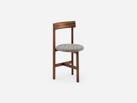 Petit, a compact dining chair in solid wood with an upholstered seat, was specially designed by Neri & Hu as part of their interior design for Papi restaurant, Paris. The chair addresses the needs of smaller spaces or making room for more guests around a table.