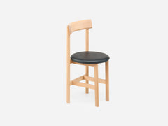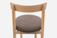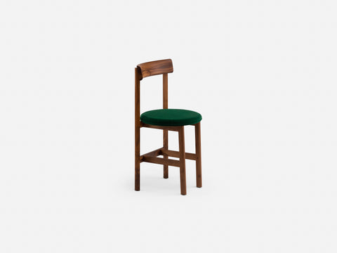 Petit, a compact dining chair in solid wood with an upholstered seat, was specially designed by Neri & Hu as part of their interior design for Papi restaurant, Paris. The chair addresses the needs of smaller spaces or making room for more guests around a table.