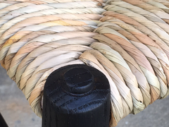 white oak in shou sugi ban oiled finish, seat in woven rush or danish cord