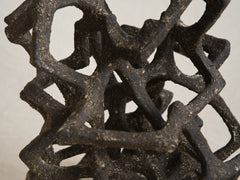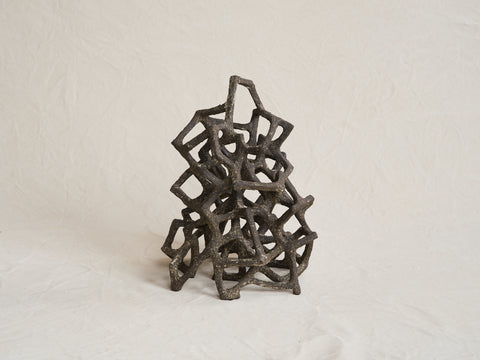 Bronwen Grieves strives to balance structure with fluidity, using organic and inorganic forms as a reference point in her work. As a ceramist she has been developing her crafts using flat coils which are incised with horizontal or vertical lines before being fixed together. She builds her pieces using grogged stoneware primarily in black and white. The glaze is used sparingly and often limited to slips which are partially rubbed away to reveal the texture and color beneath.