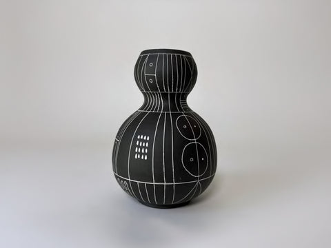 Heather Rosenman's designs emphasize minimalism by simplifying forms to their organic essence, featuring graphic surfaces or lava glaze developed through experimentation. Inspired by ancient forms, industrial design, Brutalism and geology, she’s driven to combine a primitive aesthetic with modern sensibilities.
