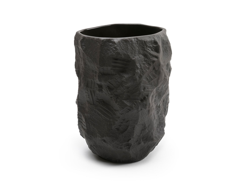 1882 Ltd.’s interpretation of black basalt, Crockery is a collection of fine bone china tableware slip-cast from plaster models carved by hand, with glazed interior for functionality and raw exterior reflecting the modest surface texture of the plaster original. Using the tools of a stonemason Lamb chips and carves a solid block of plaster to make a series of tableware, the design of each formed quite simply out of their own making.